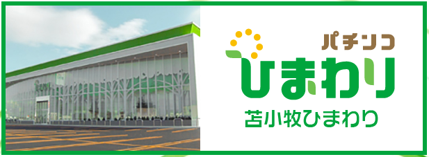| 苫小牧ひまわり | P-world | 22.5/35 | 0のつく日 | JR苫小牧駅より車で約7分 | 504台 | 288台 | 4円 / 1.25円 | 21.73円 / 6.25円 | 4円:28玉 / 1.25円:90玉 | 21.73円:5.2枚 / 6.25円:18枚 | 133点 | ||